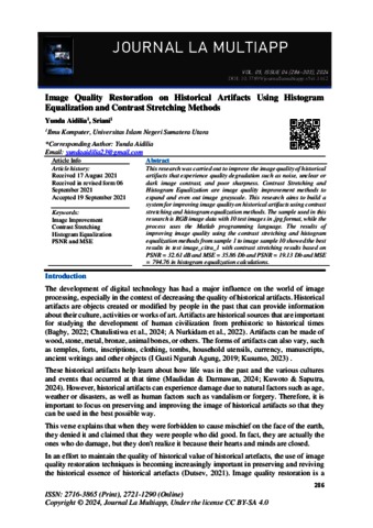Aidilia, Yunda (2024) Image Quality Restoration on Historical Artifacts Using Histogram Equalization and Contrast Stretching Methods. Journal La Multiapp.