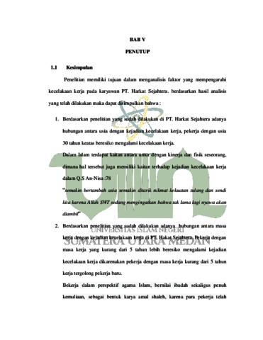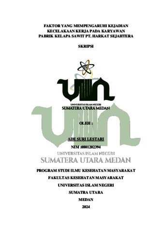SURI LESTARI, ADE (2024) Faktor Yang Mempengaruhi Kejadian Kecelakaan Kerja Pada Karyawan Pabrik Kelapa Sawit Pt. Harkat Sejahtera. Skripsi thesis, UIN Surmatra Utara Medan.