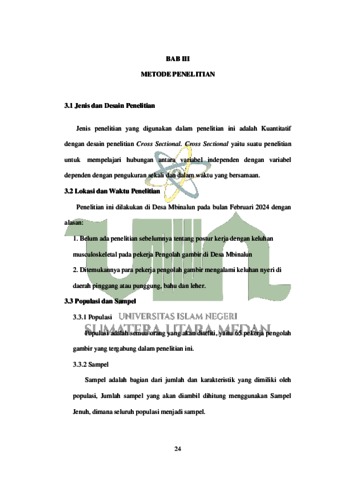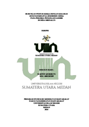 Berutu, Marwiyah (2024) Hubungan Postur Kerja dengan Keluhan Musculoskeletal Disorders Pada Pekerja Pengolah Gambir di Desa Mbinalun. Skripsi thesis, UIN Sumatera Utara Medan.