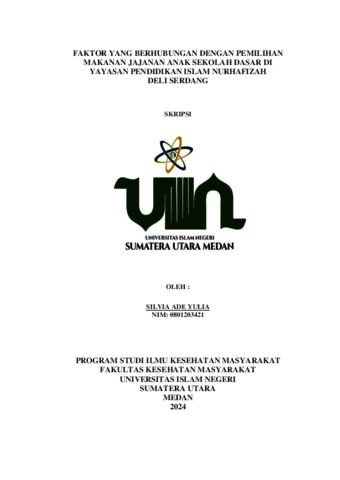 Yulia, Silvia Ade (2024) Faktor Yang Berhubungan Dengan Pemilihan Makanan Jajanan Anak Sekolah Dasar Di Yayasan Pendidikan Islam Nurhafizah Deli Serdang. Diploma thesis, UIN Sumatera Utara.