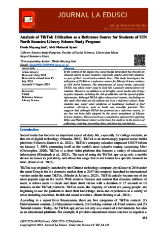 Mayang Sari, Dinda Analysis of TikTok Utilization as a Reference Source for Students of UIN North Sumatra Library Science Study Program. JOURNAL LA EDUSCI.