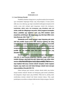 g outcomes The research that has been carried out is entitled "Educative Interaction Patterns of Teachers and Students in Improving SKI Learning Outcomes at MAS PAB Sampali". The background is student learning outcomes in SKI subjects. Educative interaction patterns are one activity that can be an alternative for improving student learning outcomes in SKI subjects. The aim of this research is to determine the educational interaction patterns of teachers and students in improving SKI learning outcomes and to determine the impact of implementing teacher and student educational interaction patterns in improving SKI learning outcomes. This type of research is qualitative research. The data collection methods used were observation, interviews and documentation. Data analysis technique namely data reduction, data presentation, and drawing verification conclusions. The data sources for the research informants were PKM in the curriculum sector, SKI teachers, and representatives of several students at MAS PAB Sampali. The results of this research are that the educational interaction patterns implemented run effectively. SKI teachers use a one-way pattern in delivering material, a two-way pattern through question and answer interactions, and a threeway pattern with group activities. Of the three patterns that have been implemented, they can have a positive impact on improving students' SKI learning outcomes, as proven by students who are increasingly active in learning and have in-depth knowledge of the material that has been explained. Students are also said to have fulfilled the three aspects of learning outcomes, namely cognitive, affective, and psychomotor.