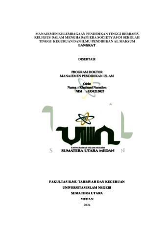 Nasution, Khairani (2024) Manajemen Kelembagaan Pendidikan Tinggi Berbasis Religius Dalam Menghadapi Era Society 5.0 di Sekolah Tinggi Keguruan dan Ilmu Pendidikan Al Maksum Langkat. Doctoral thesis, UIN Sumatera Utara.