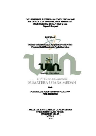 Nasution, Putra Mahendra Gunawan (2024) Implementasi Sistem Manajemen Teknologi Informasi dan Komunikasi di Madrasah (Study Multi Situs Di MAN Sekabupaten Tapanuli Tengah). Doctoral thesis, UIN Sumatera Utara.