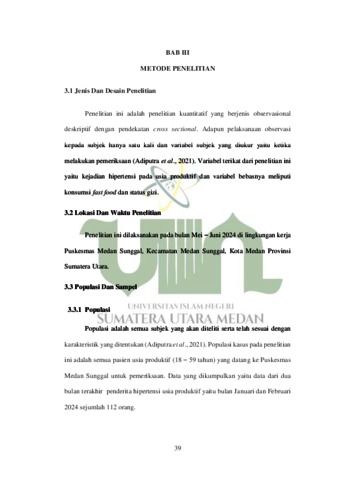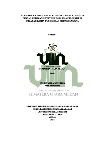 NASUTION, ANNISYAFIRA (2024) Hubungan Konsumsi Fast Food Dan Status Gizi Dengan Kejadian Hipertensi Pada Usia Produktif Di Wilayah Kerja Puskesmas Medan Sunggal. Skripsi thesis, UIN Surmatra Utara Medan.