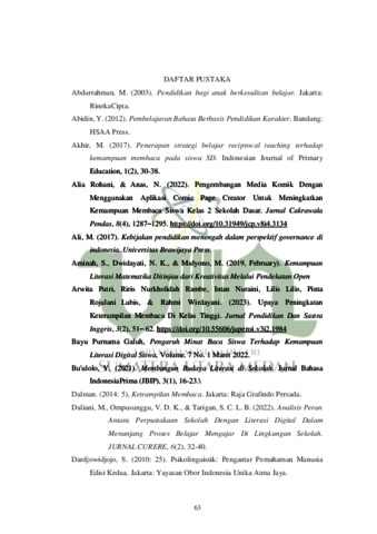 | Subjects: | 300 Social sciences > 370 Education > 372 Elementary education > 372.4 Membaca, belajar membaca |