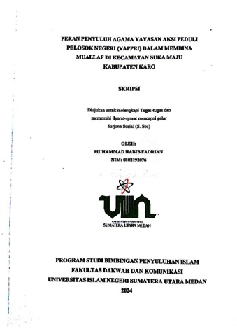 Fadrian, Muhammad Habib (2023) Peran Penyuluh Agama Yayasan Aksi Peduli PelosokNegeri (YAPPRI) Dalam Membina Muallaf di Kecamatan Sukamaju Kabupaten Karo. Diploma thesis, UIN Sumatera Utara.