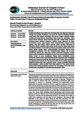 Siregar, Dinanti Nanda Pertiwi (2024) Implementasi Metode Trend Moment Dalam Memprediksi Penjualan Produk Pakan Ternak Pada PT Charoen Pokhpand Medan. Indonesian Journal of Computer Science.