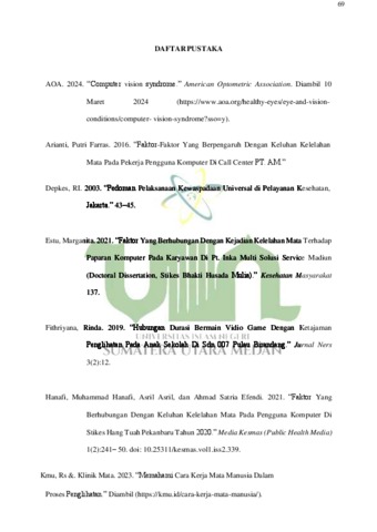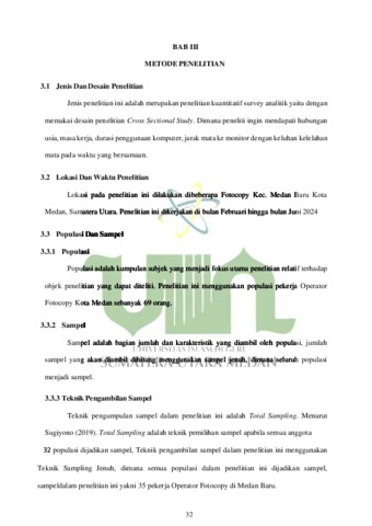 Eliza, Silvia (2024) Faktor Yang Berhubungan Dengan Keluhan Kelelehan Mata Pada Pekerja Operator Fotocopy di Medan Baru. Skripsi thesis, UIN Sumatera Utara Medan.