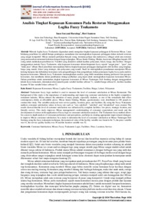 Harahap, Inun Suryani (2024) Analisis Tingkat Kepuasan Konsumen Pada Restoran Menggunakan Logika Fuzzy Tsukamoto. Journal of Information System Research (JOSH).