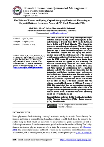 Khairi, Mhd Rizki (2024) The Effect of Return on Equity, Capital Adequacy Ratio and Financing to Deposit Ratio on Return on Assets of PT. Bank Muamalat Tbk. Ilomata International Journal of Management, 5 (4).