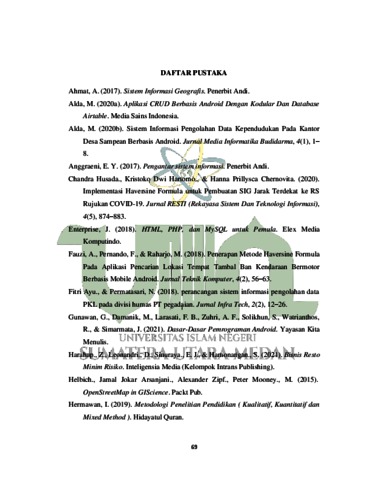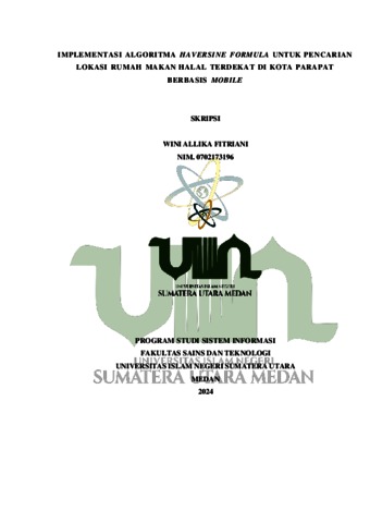 Fitriani, Wini Allika (2024) Implementasi Algoritma Haversine Formula Untuk Pencarian Lokasi Rumah Makan Halal Terdekat Di Kota Parapat Berbasis Mobile. Diploma thesis, UIN Sumatera Utara.