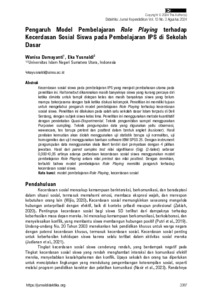Damayanti, Wanisa Pengaruh Model Pembelajaran Role Playing terhadap Kecerdasan Sosial Siswa pada Pembelajaran IPS di Sekolah Dasar. Jurnal Kependidikan.