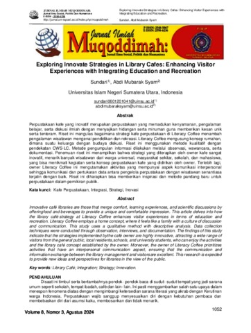 Sundari, Sundari (2024) Exploring Innovate Strategies in Library Cafes: Enhancing Visitor Experiences with Integrating Education and Recreation. JURNAL ILMIAH MUQODDIMAH: Jurnal Ilmu Sosial, Politik Dan Humaniora, 8 (3).