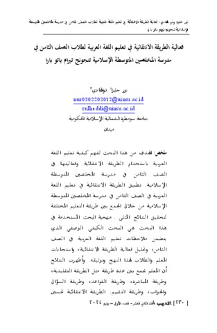 فعالية الطريقة االنتقائية يف تعليم اللغة العربية لطالب الصف الثامن يف مدرسة املخلصني املتوسطة اإلسالمية تنجونج تريام ابتو ابرا