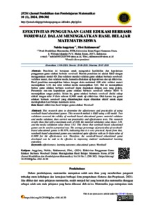Penelitian ini bertujuan untuk mengetahui keefektifan dan kepraktisan penggunaan game edukasi berbasis wordwall. Metode penelitian ini adalah R&D dengan menggunakan model 4D. Dua validator menilai validitas game edukasi berbasis wordwall: validator materi, dan validator media, kemudia dilakukan uji kepraktisan dan uji efektivitas. Hasil penelitian menunjukkan bahwa dengan skala maksimal 4,00 nilai validasi materi menunjukkan 3,10, dan nilai validasi media menunjukkan 3,61. Hal ini menunjukkan bahwa game edukasi berbasis wordwall dapat digunakan dengan cara yang praktis. Persentase rata-rata kepraktisan game edukasi berbasis wordwall sebesar 80,93 % menunjukkan sangat praktis. Selain itu, game edukasi berbasis wordwall dinilai cukup efektif dengan nilai N-Gain sebesar 0,3489 untuk uji efektivitas. Oleh karena itu, game edukasi berbasis wordwall yang dikembangkan dapat dikatakan efektif untuk dapat meningkatkan hasil belajar matematis siswa.