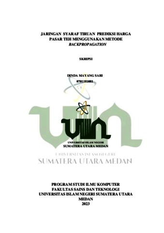 Sari, Dinda Mayang (2023) Jaringan Syaraf Tiruan Prediksi Harga Pasar Teh Menggunakan Metode Backpropagation. Diploma thesis, UIN Sumatera Utara.