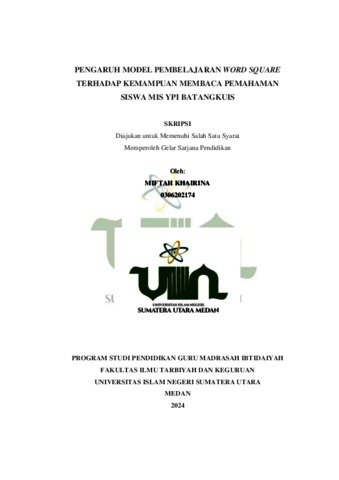 Khairina, Miftah (2024) Pengaruh Model Pembelajaran Word Square Terhadap Kemampuan Membaca Pemahaman Siswa MIS YPI Batangkuis. Diploma thesis, UIN Sumatera Utara.
