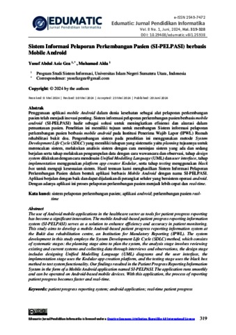 Gea, Yusuf Abdul Aziz (2024) Sistem Informasi Pelaporan Perkembangan Pasien (SI-PELPASI) berbasis Mobile Android. Edumatic: Jurnal Pendidikan Informatika.