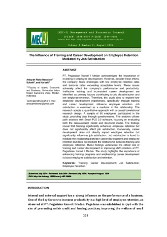 Nasution, Anisyah Risky (2024) The Influence of Training and Career Development on Employee Retention Mediated by Job Satisfaction. (MEC-J) Management and Economics Journal, 8 (2).