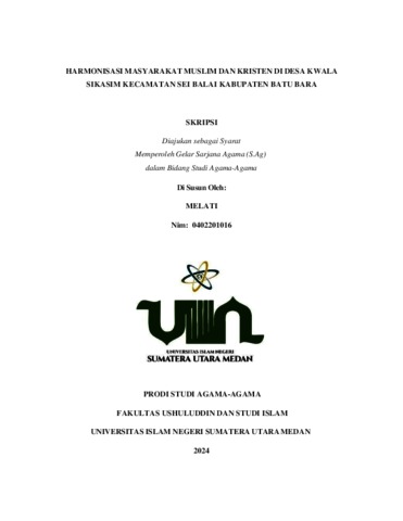 Melati, Melati (2024) Harmonisasi Masyarakat Muslim dan Kristen di Desa Kwala Sikasim Kecamatan Sei Balai Kabupaten Batu Bara. Diploma thesis, UIN Sumatera Utara.
