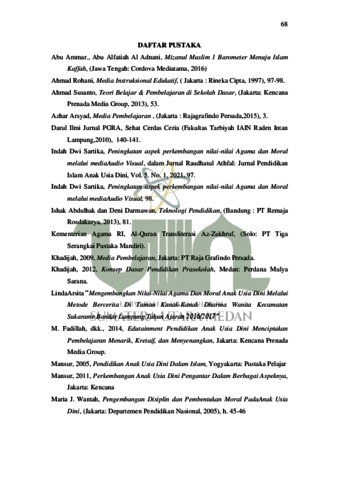 Divisions: Fakultas Ilmu Tarbiyah dan Keguruan > Pendidikan Islam Anak Usia Dini (PIAUD) > Skripsi
