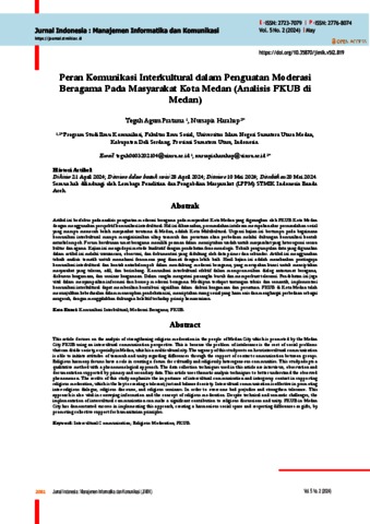 Agum Pratama, Teguh Peran Komunikasi Interkultural dalam Penguatan Moderasi Beragama Pada Masyarakat Kota Medan (Analisis FKUB di Medan). Jurnal Indonesia : Manajemen Informatika dan Komunikasi.