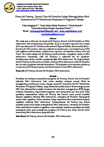 Anggraini, Yulia (2024) Peran Job Training , Reward, Dan Job Discipline Dalam Meningkatkan Work Achievement di PT Perkebunan Nusantara IV Regional I Medan. Jambura Economic Education Journal, 6 (1).