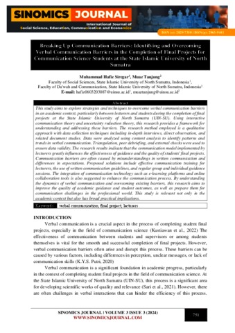 Breaking Up Communication Barriers: Identifying and Overcoming Verbal Communication Barriers in the Completion of Final Projects for Communication Science Students at the State Islamic University of North Sumatra