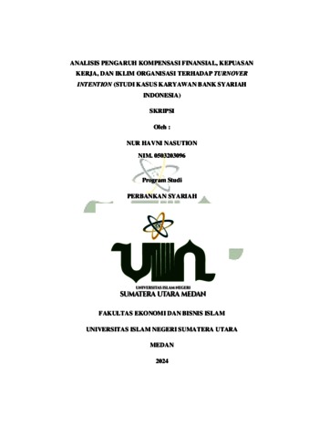 Nasution, Nur Havni (2024) Analisis Pengaruh Kompensasi Finansial, Kepuasan Kerja, Dan Iklim Organisasi Terhadap Turnover Intention (Studi Kasus Karyawan Bank Syariah Indonesia). Diploma thesis, UIN Sumatera Utara.