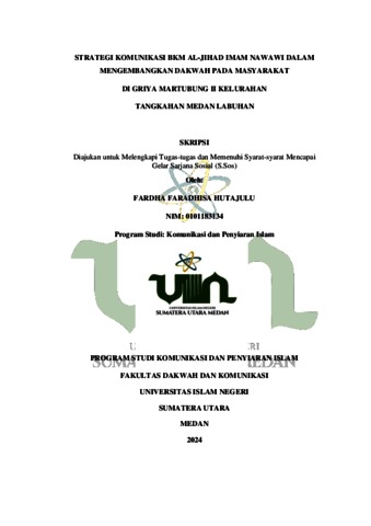 Hutajulu, Fardha Faradhisa (2024) Strategi Komunikasi BKM Al-Jihad Imam Nawawi Dalam Mengembangkan Dakwah Pada Masyarakat Di Griya Martubung II Kelurahan Tangkahan Medan Labuhan. Skripsi thesis, UIN Sumatera Utara Medan.