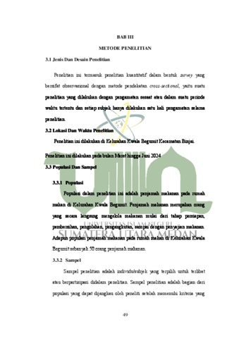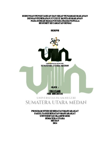 Utami, Tri (2024) Hubungan Pengetahuan dan Sikap Penjamah Makanan dengan Penerapan Hygiene Sanitasi Makanan pada Rumah Makan di Kelurahan Kwala Begumit Kecamatan Binjai. Diploma thesis, UIN Sumatera Utara.