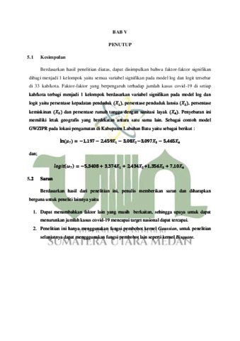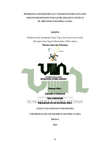Hikmah, Khairun (2023) Penerapan Geographically Weighted Zero-Inflated Poisson Regression Pada Jumlah Kasus Covid-19 Di Provinsi Sumatera Utara. Diploma thesis, UIN Sumatera Utara.