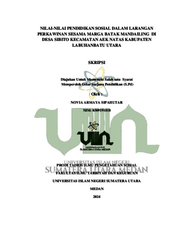 Armaya Sipahutar, Novia (2024) Nilai-Nilai Pendidikan Sosial Dalam Larangan Perkawinan Sesama Marga Batak Mandailing Di Desa Sibito Kecamatan Aek Natas Kabupaten Labuhanbatu Utara. Skripsi thesis, Universitas Islam Negeri Sumatra Utara.