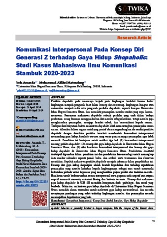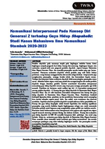 Amanda, Yola (2024) Komunikasi Interpersonal Pada Konsep Diri Generasi Z terhadap Gaya Hidup Shopaholic: Studi Kasus Mahasiswa Ilmu Komunikasi Stambuk 2020-2023. Jurnal Satwika: Kajian Ilmu Budaya dan Perubahan Sosial.