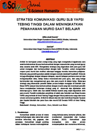 Kurnia, Alfitra Indri (2024) Strategi Komunikasi Guru SLB Yapsi Tebing Tinggi Dalam Meningkatkan Pemahaman Murid Saat Belajar. eScience Humanity Journal.
