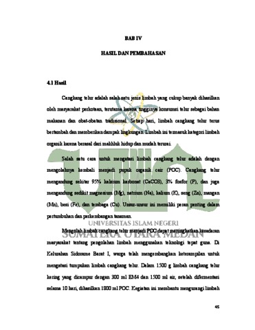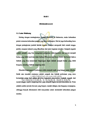 Claudia, Cindy (2024) Analisis Pemanfaatan Limbah Cangkang Telur Sebagai Pupuk Organik Cair Dalam Upaya Pengendalian Pencemaran Lingkungan Di Kelurahan Sidorame Barat I. Diploma thesis, UIN Sumatera Utara.