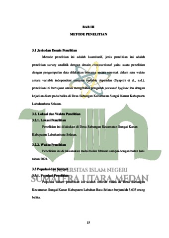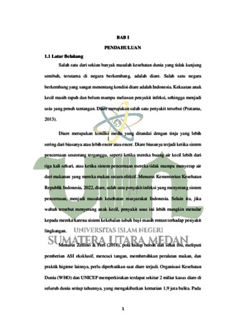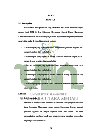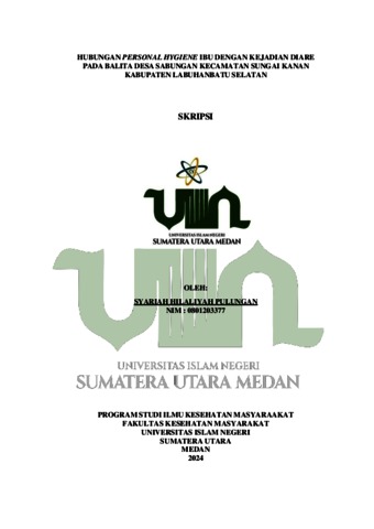Pulungan, Syariah Hilaliyah (2024) Hubungan Personal Hygiene Ibu Dengan Kejadian Diare Pada Balita di Desa Sabungan, Kec. Sungai Kanan, Kab. Labuhanbatu Selatan. Skripsi thesis, UIN Sumatera Utara Medan.