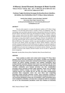 Adinda, Amelia Putri (2024) Penilaian Tingkat Kesehatan Keuangan Berdasarkan Rasio Likuiditas, Solvabilitas, dan Profitabilitas Pada PT. Wilmar Cahaya Indonesia. Al-Kharaj: Jurnal Ekonomi, Keuangan & Bisnis Syariah.