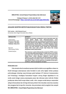 Sartika, Wily Analisis Konten Kepustakawanan Pada Media Tiktok. BIBLIOTIKA : Jurnal Kajian Perpustakaan dan Informasi.