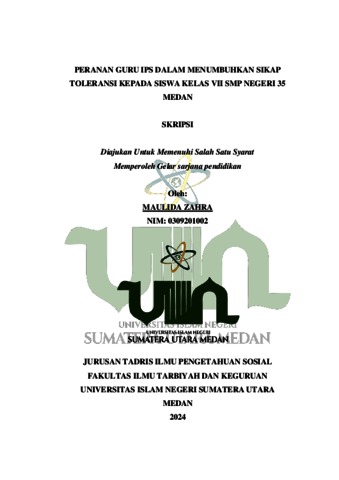 Zahra, Maulida (2024) Peranan Guru IPS dalam Menumbuhkan Sikap Toleransi Kepada Siswa Kelas VII SMP Negeri 35 Medan. Diploma thesis, UIN Sumatera Utara.