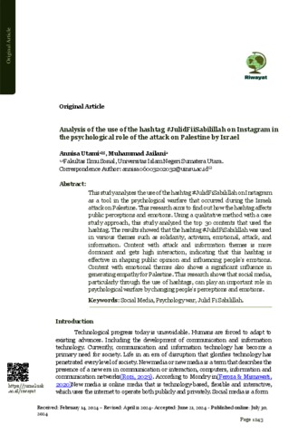 Utami, Annisa (2024) Analysis of the use of the hashtag #JulidFiiSabilillah on Instagram in the psychological role of the attack on Palestine by Israel. Riwayat: Educational of History and Humanities.