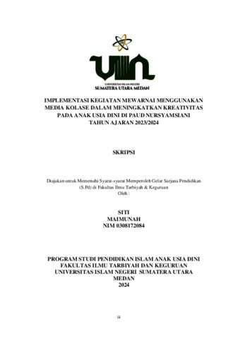 Maimunah, Siti (2024) Implementasi Kegiatan Mewarnai Menggunakan Media Kolase Dalam Meningkatkan Kreativitas Pada Anak Usia Dini 2023/2024. Skripsi thesis, UIN Sumatera Utara Medan.