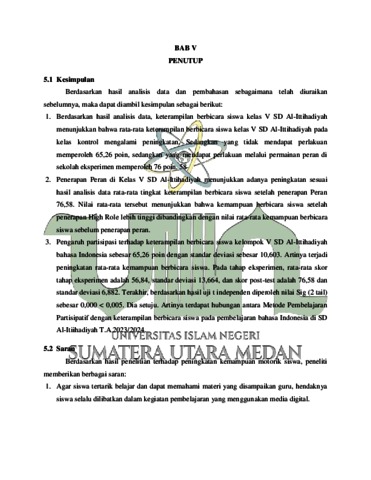 Lubis, Khoirun Nisa (2024) Pengaruh Role Playing Terhadap Keterampilan Berbicara Peserta Didik Di Kelas V SD Al-Ittihadiyah. Skripsi thesis, Universitas Islam Negeri Sumatera Utara Medan.