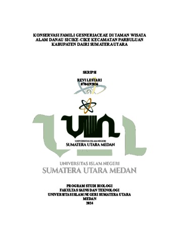 Lestari, Revi (2024) Keanekaragaman, Pola Distribusi dan Status Konservasi Famili Gesneriaceae di Taman Wisata Alam Danau Sicike-cike Kecamatan Parbuluan Kabupaten Dairi Sumatera Utara. Skripsi thesis, UIN Sumatera Utara Medan.