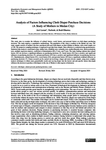 Lestari, Asri Analysis of Factors Influencing Cloth Diaper Purchase Decisions (A Study of Mothers in Medan City). Quantitative Economics and Management Studies (QEMS).
