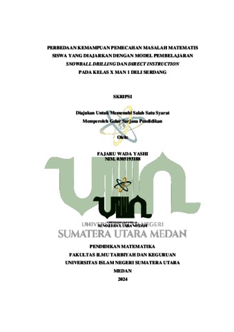 Yashi, Fajaru Wada (2024) Perbedaan Kemampuan Pemecahan Masalah Matematis Siswa yang Diajarkan Dengan Model Pembelajaran Snowball Drilling dan Direct Instruction Pada Kelas X MAN 1 Deli Serdang. Skripsi thesis, UIN Sumatera Utara Medan.