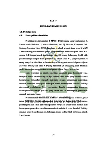 Perbedaan Kemampuan Pemecahan Masalah Matematis Siswa yang Diajarkan Dengan Model Pembelajaran Snowball Drilling dan Direct Instruction Pada Kelas X MAN 1 Deli Serdang