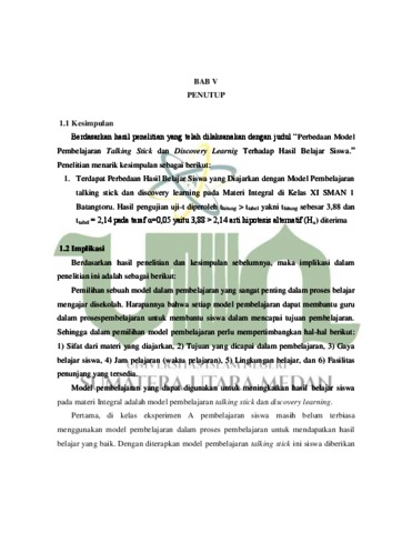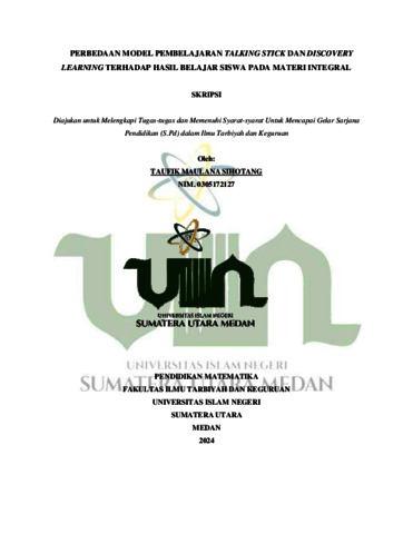 Maulana Sihotang, Taufik (2024) Perbedaan Model Pembelajaran Talking Stick Dan Discovery Learning Terhadap Hasil Belajar Siswa Pada Materi Integral. Skripsi thesis, Universitas Islam Negeri Sumatra Utara.