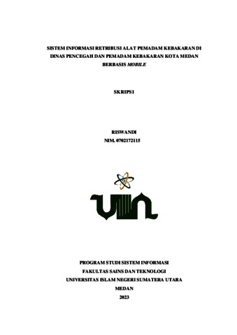 RISWANDI, RISWANDI (2024) Sistem Informasi Retribusi Alat Pemadam Kebakaran Di Dinas Pencegah Dan Pemadam Kebakaran Kota Medan Berbasis Mobile. Skripsi thesis, Universitas Islam Negeri Sumatra Utara.